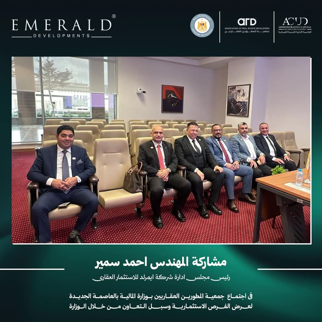 شارك وفد من شركة إميرالد للتطوير والاستثمار العقاري برئاسة المهندس احمد سمير رئيس مجلس إدارة الرسمة في الاجتماع الذي نظمته جمعية المطورين العقاريين داخل مقر وزارة المالية بالعاصمة الإدارية الجديدة، وذلك لبحث الفرص الاستثمارية المتاحة وتعزيز سبل التعاون بين الجهات الحكومية والقطاع العقاري الخاص.